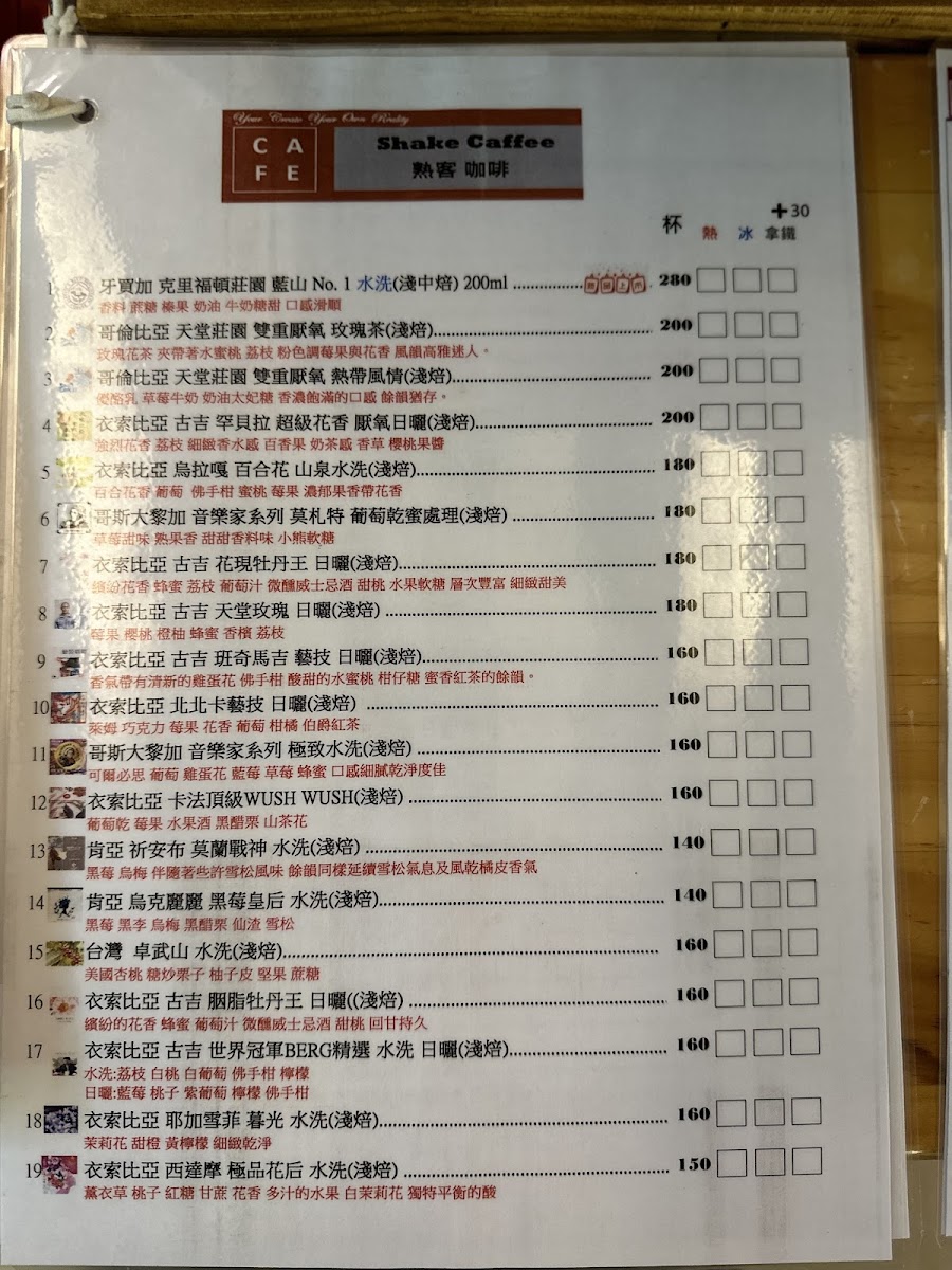 熟客精品咖啡 |花香淺焙|果香中焙| 自家烘焙|濾掛--手沖@craft cafe#handmade#poer-over Menu